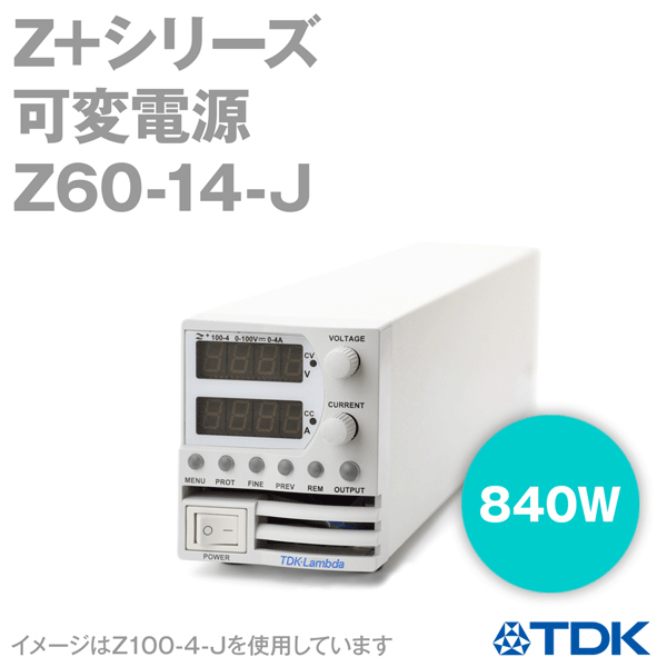 [型名] Z60-14-J[定格出力電圧 (*1)(V)] 60[定格出力電流 (*2)(A)] 14[定格出力電力(W)] 840[入力電圧 / 周波数 (*3)] 85 〜 265VAC 連続入力 (単相 47 〜 63Hz)[入力電流(100/200VAC) (typ.)(*4)(A)] 10.00/4.90[力率 (typ.)] 0.99(100VAC)、0.98(200VAC)、定格出力電力時[効率 (100/200VAC) (typ.)(*4)(%)] 85/87[突入電流(*5)(A)] 25 以下定電圧モード[最大入力変動 (*6)] 定格電圧の 0.01% + 2mV[最大負荷変動 (*7)] 定格電圧の 0.01% + 2mV[リップルノイズ(20MHz)(*8)(mV)] 50[リップルノイズ(5Hz 〜 1MHz:実効値)(*8)(mV)] 12[周囲温度対出力変動(PPM/℃)] 30 PPM/℃ (30 分ウォームアップ後)[初期ドリフト] 定格出力電圧の 0.05% + 2mV (入力電圧・出力電力・周囲温度一定で通電開始後の 30 分間)[通電ドリフト] 定格電圧の 0.02% (入力・負荷電流・周囲温度一定で 30 分ウォームアップ後、8 時間以上の間隔をおいた場合)[リモートセンス最大補正電圧(V)] 3[プログラミング応答時間(立上り:0〜Vomax)(*9)(mS)] 50[プログラミング応答時間(立下がり :0 〜 Vomax)] 全負荷時 (*9) 25 Td(typ.) (16) 570 無負荷時 (*10) (*13) (*15) 175 無負荷時 (*10) (*14) (*15) 500[過渡応答時間(負荷急変時)(mS)] 1ms 以下 (ローカルセンス時)注)出力電圧が定格電圧の 0.5% 以内に復帰する時間をいいます。