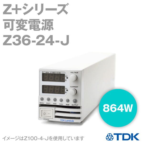 [型名] Z36-24-J[定格出力電圧 (*1)(V)] 36[定格出力電流 (*2)(A)] 24[定格出力電力(W)] 864[入力電圧 / 周波数 (*3)] 85 〜 265VAC 連続入力 (単相 47 〜 63Hz)[入力電流(100/200VAC) (typ.)(*4)(A)] 10.30/5.02[力率 (typ.)] 0.99(100VAC)、0.98(200VAC)、定格出力電力時[効率 (100/200VAC) (typ.)(*4)(%)] 85/87[突入電流(*5)(A)] 25 以下定電圧モード[最大入力変動 (*6)] 定格電圧の 0.01% + 2mV[最大負荷変動 (*7)] 定格電圧の 0.01% + 2mV[リップルノイズ(20MHz)(*8)(mV)] 50[リップルノイズ(5Hz 〜 1MHz:実効値)(*8)(mV)] 5[周囲温度対出力変動(PPM/℃)] 30 PPM/℃ (30 分ウォームアップ後)[初期ドリフト] 定格出力電圧の 0.05% + 2mV (入力電圧・出力電力・周囲温度一定で通電開始後の 30 分間)[通電ドリフト] 定格電圧の 0.02% (入力・負荷電流・周囲温度一定で 30 分ウォームアップ後、8 時間以上の間隔をおいた場合)[リモートセンス最大補正電圧(V)] 2[プログラミング応答時間(立上り:0〜Vomax)(*9)(mS)] 50[プログラミング応答時間(立下がり :0 〜 Vomax)] 全負荷時 (*9) 25 Td(typ.) (16) 435 無負荷時 (*10) (*13) (*15) 155 無負荷時 (*10) (*14) (*15) 470[過渡応答時間(負荷急変時)(mS)] 1ms 以下 (ローカルセンス時)注)出力電圧が定格電圧の 0.5% 以内に復帰する時間をいいます。