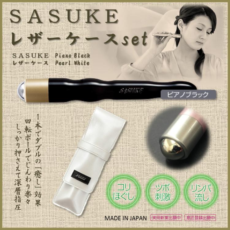 【広島製造】指圧 マッサージ器具 マッサージローラー こりほぐしツボ押しローラー「SASUKE」レザーケースセット【ピアノブラック+パールホワイト 】こりほぐし つぼ押し 美顔ローラー マッサージローラー【ネコポス送料無料】敬老の日 プレゼント 日本製